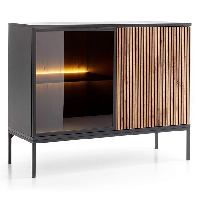 Moderní nábytková sestava SENTO přináší do vašeho interiéru eleganci a praktičnost. Její nadčasový design s rýhovanými detaily a integrovaným LED osvětlením vytváří příjemnou atmosféru a zároveň poskytuje dostatek úložného prostoru. Díky svému čistému provedení se skvěle hodí do obývacích pokojů, jídelen i pracoven, kde podtrhne moderní styl. SENTO je k dispozici ve dvou atraktivních barevných variantách, které umožňují dokonalé sladění s vaším stávajícím vybavením. Zvolit můžete jemnou a světlou kašmírovou barvu pro vzdušný a minimalistický vzhled, nebo elegantní kombinaci černé s dekorem dub wotan pro výraznější a kontrastnější pojetí. Obě varianty nabízejí sofistikovaný vzhled a odolné materiály, které zaručují dlouhou životnost. PROVEDENÍ Vysoce kvalitní laminovaná dřevotřísková deska Hrany dodatečně zakončené ABS dýhou MDF deska Bezúchytkový systém otevírání (push-to-open) Odolná a pevná konstrukce Nábytek pro svépomocnou montáž, dodáván v rozloženém stavu s návodem ROZMĚRY Šířka - 104 cm Výška - 83 cm Hloubka - 39 cm Rozměrová tolerance +/- 3 cm.