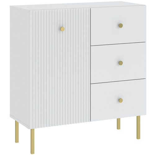 Představujeme vám moderní nábytkovou sestavu VIENA, která vnese do vašeho interiéru elegantní a minimalistický design. Tato kolekce se vyznačuje kombinací jednoduchých linií a zajímavých, svisle rýhovaných textur na dvířkách, které dodávají nábytku jedinečný a sofistikovaný vzhled. Každý kus je navržen s ohledem na funkčnost a estetiku, ať už hledáte prostornou komodu do obývacího pokoje, praktický noční stolek do ložnice, nebo moderní RTV stolek pod televizi. Všechny komponenty jsou navíc k dispozici ve dvou barevných variantách – nadčasové bílé se zlatými nožkami a úchytkami a elegantní antracitové. Sestava VIENA nabízí celkem devět různých elementů, které lze libovolně kombinovat a vytvořit tak dokonalý celek pro váš domov. Vybírat můžete z několika typů komod s různým uspořádáním dvířek a zásuvek, nočního stolku, vitrín a RTV stolku. Zlaté detaily v podobě tenkých nožek a decentních úchytek dodávají nábytku nádech luxusu a lehkosti. Ať už se rozhodnete pro čistou bílou variantu, která prosvětlí a opticky zvětší prostor, nebo pro tmavou antracitovou, která dodá interiéru hloubku a osobitý charakter, nábytek VIENA se stane dominantou každé místnosti. PROVEDENÍ čela z MDF desek plastové úchyty kovové nožky PVC zakončení hran ROZMĚRY Šířka - 92 cm Výška - 99 cm Hloubka - 42 cm Rozměrová torelance +/- 3 cm.