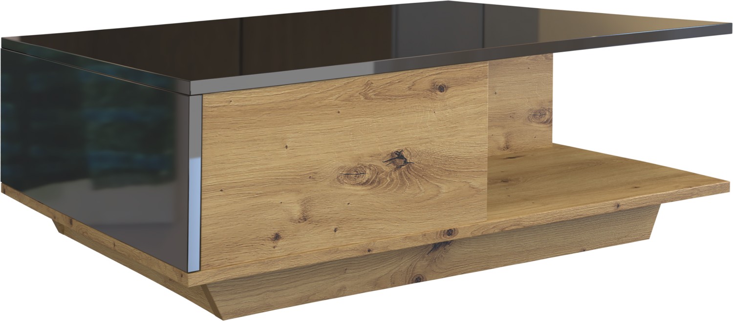 BARVA: DUB ARTISAN / ČERNÝ LESK Ideální nabídka pro lidi, kteří ocení, že mají ve svém bytě krásný nábytek. Moderní kus nábytku v barvě řemeslného dubu splní očekávání všech, kteří oceňují kombinaci jednoduchosti a elegance Lehký, jednoduchý tvar, perfektní lavička do obývacího pokoje. Stolek má funkční a prostorný úložný prostor. Dvířka a horní deska v lesku! ROZMĚRY: Šířka: 90 cm Hloubka: 60 cm Výška: 42 cm MATERIÁL: Korpus - 16 mm laminovaná dřevotříska. Dvířka a horní část - laminovaná dřevotříska o tloušťce 17 mm, lakovaná ve vysokém lesku. TIP-ON dveře odkládací schránky bez rukojeti lze snadno otevřít lehkým stisknutím. Dveře se otevírají dolů do polohy vhodné pro uživatele. Chcete-li je zavřít, lehce stiskněte přední část. Používání:Povrch nábytku očistěte měkkým hadříkem. Nepoužívejte agresivní chemikálie. V balení:Montážní návod se všemi potřebnými montážními doplňky.Nábytek je předem zabalen pro vlastní montáž.