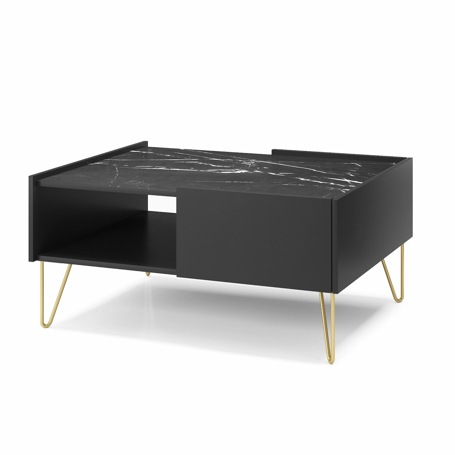 Elegantní kombinace černé a zlaté pro moderní interiér Nábytková sestava HARMONY přináší do vašeho obývacího pokoje sofistikovaný design s nádechem luxusu. Tmavá, téměř černá povrchová úprava s jemnou strukturou dřeva je elegantně doplněna lesklými zlatými nožičkami ve tvaru vlásenek, které dodávají nábytku lehkost a moderní styl. Tento kontrast barev a materiálů vytváří poutavý celek, který se stane dominantou každého prostoru. Funkčnost a styl s mramorovým akcentem Sestava HARMONY není jen o kráse, ale i o praktičnosti. Promyšlené úložné prostory v podobě komod a skříněk zajistí pořádek ve vašem domově, zatímco odolná deska s imitací černého mramoru na konferenčním stolku a vrchních plochách dodává sestavě exkluzivní vzhled a zároveň je snadno udržovatelná. HARMONY je ideální volbou pro ty, kteří hledají harmonické spojení moderního designu, vysoké funkčnosti a nadčasové elegance. PROVEDENÍ Oboustranně laminovaná deska tloušťky 16 mm Hrany dodatečně zakončené ABS dýhou MDF deska Pevné kovové nožky Bezúchytový systém push-to-open Odolná a pevná konstrukce Nábytek pro svépomocnou montáž, dodáván v rozloženém stavu s návodem ROZMĚRY Šířka - 97 cm Výška - 45 cm Hloubka - 65 cm Rozměrová tolerance +/- 3 cm.