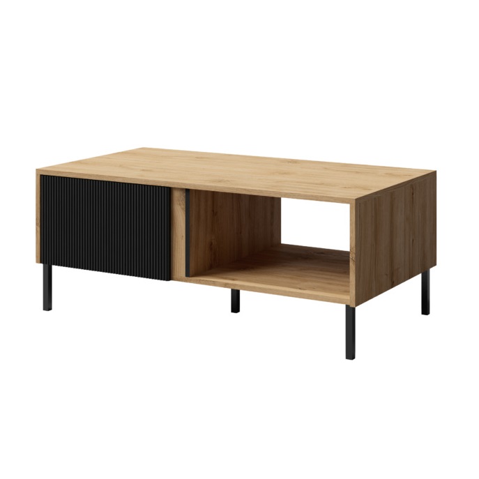Nábytek do obývacího pokoje MIA - atraktivní design a vysoká užitná hodnota Sestava do obývacího pokoje MIA se vyznačuje mimořádně atraktivním designem s využitím velmi módní kombinace přírodní hnědé a černé. Je to klasika, která je vždy na vrcholu. Sestava vypadá mimořádně stylově a elegantně. Jedná se o nábytek do obývacího pokoje, který nejen potěší oko svým jedinečným vzhledem. Zákazníci oceňují jeho striktně praktické výhody - prostorné interiéry jednotlivých komponentů pomáhají udržovat v místnosti pořádek. Moderní a funkční nábytek do obývacího pokoje Sestava do obývacího pokoje MIA je zajímavou nabídkou, vhodnou do každého bytu. Jedná se o unikátní řadu sestávající z mnoha komponentů, které lze volně kombinovat podle potřeb a podmínek v dané místnosti. Jsou vyrobeny v moderním stylu, který se díky svému nadčasovému charakteru dokonale hodí do různých aranžmá. Jednoduché linie a geometrické tvary dokonale zapadnou do aktuálně populárních interiérových trendů. ROZMĚRY šířka - 110 cm výška - 45 cm hloubka - 60 cm Rozměrová tolerance +/- 3 cm.