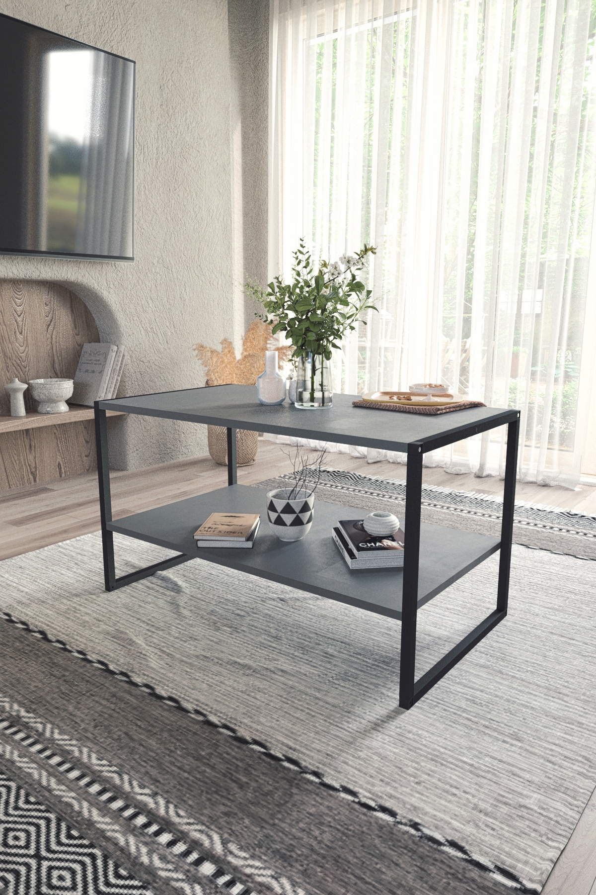 Konferenční stolek VENDULA - antracit Moderní konferenční stolek VENDULA v loftovém stylu - praktičnost a elegance v jednom. Vneste do svého obývacího pokoje nádech modernosti. Konferenční stolek VENDULA disponuje prostornou policí navíc a svým industriálním provedením dodává interiéru osobitý styl. Možnost přizpůsobení interiéru díky třem nejpopulárnějším barevným provedením - dub safír, bílá a antracit. PROVEDENÍ dodáváno v rozloženém stavu nábytek je vyroben z 18mm dřevotřískové desky v souladu s 1. třídou evropských norem kvality E1 kovový rám je nalakován elektrostatickou práškovou barvou odolnou proti korozi a poškrábání snadné sestavení do několika minut veškeré komponenty k sestavení i přehledný návod v balení ROZMĚRY Šířka: 90 cm Výška: 48 cm Hloubka: 55 cm