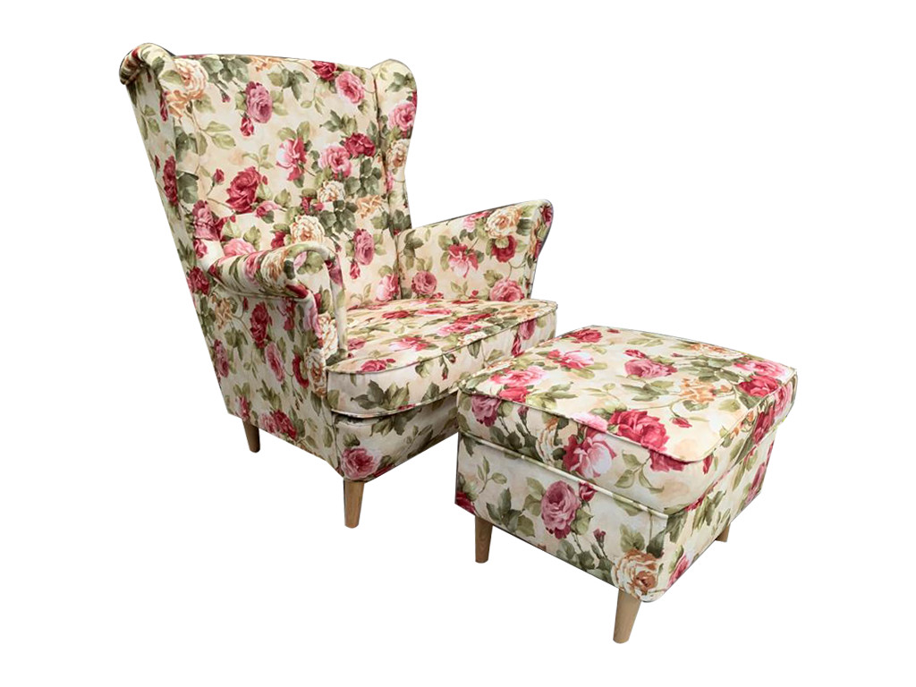 FRONTI Křeslo ušák KING CORAL - Květy + taburet