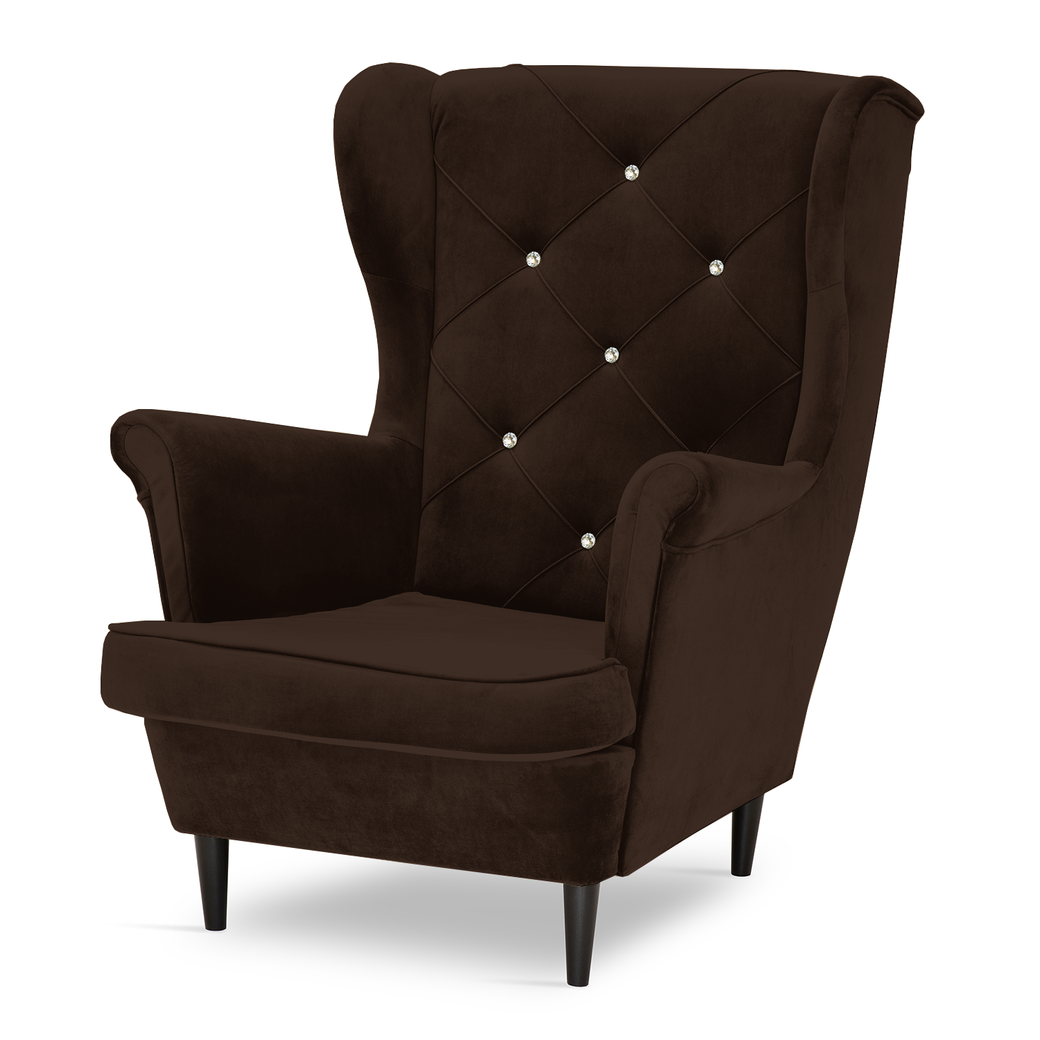 FRONTI Křeslo ušák KING CRYSTAL - hnědé
