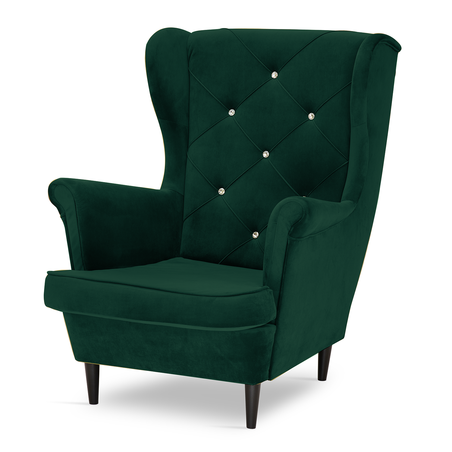 FRONTI Křeslo ušák KING CRYSTAL - zelené