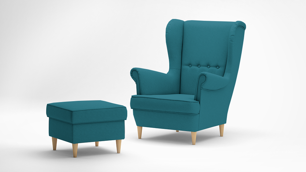 FRONTI Křeslo ušák KING II modrý - MALMO 85 + taburet