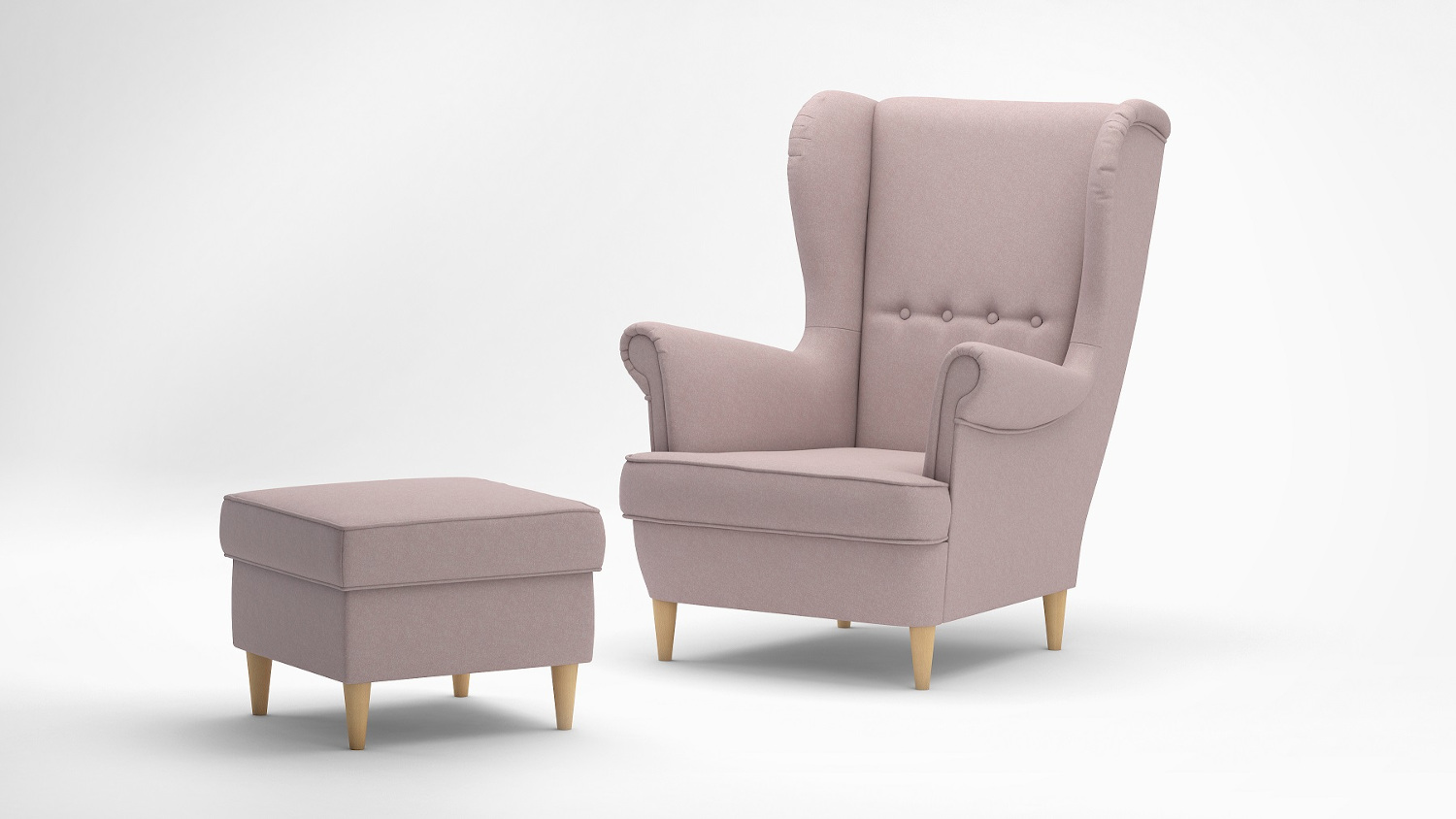 FRONTI Křeslo ušák KING II Růžový - MALMO 61 + taburet