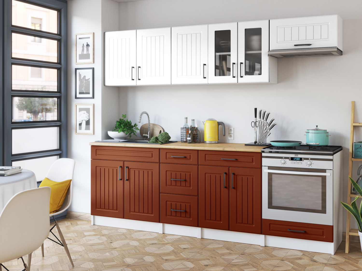 FRONTI Kuchyňská linka BERIZA CHOCO 240cm - Bílá + brick