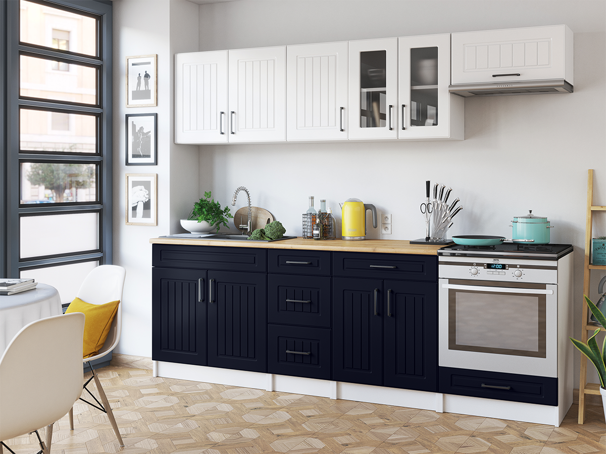 FRONTI Kuchyňská linka BERIZA CHOCO 240cm - Bílá + marine blue