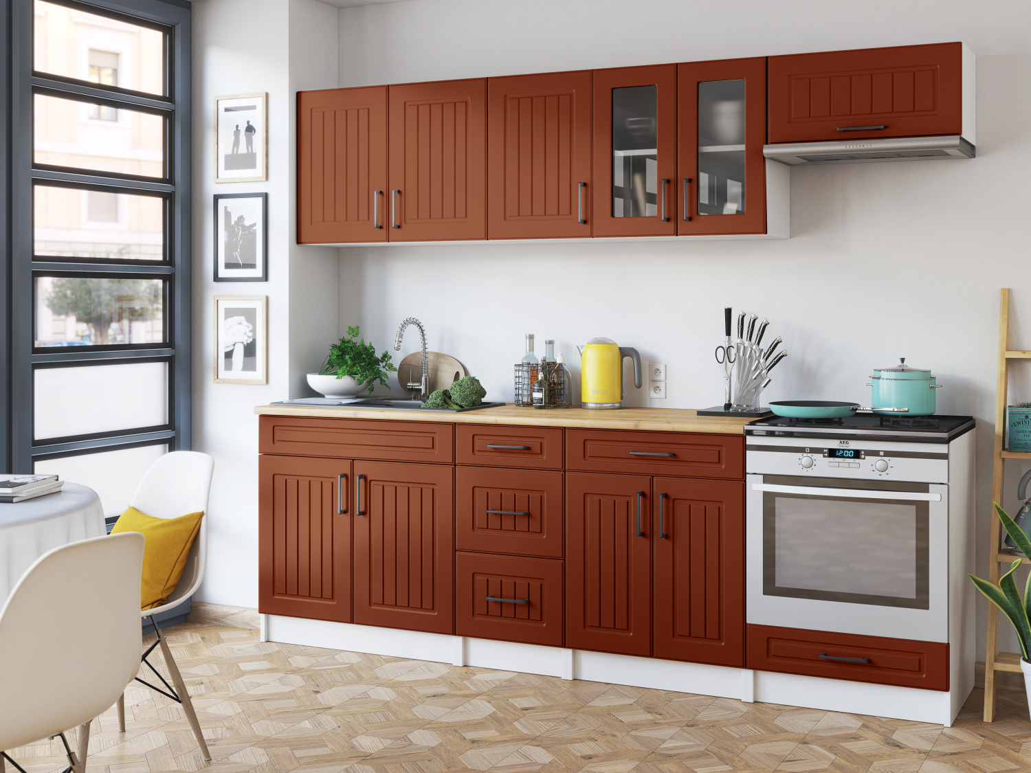 Domů Nábytek Kuchyně Kuchyňské linky FRONTI Kuchyňská linka BERIZA CHOCO 240cm - Brick