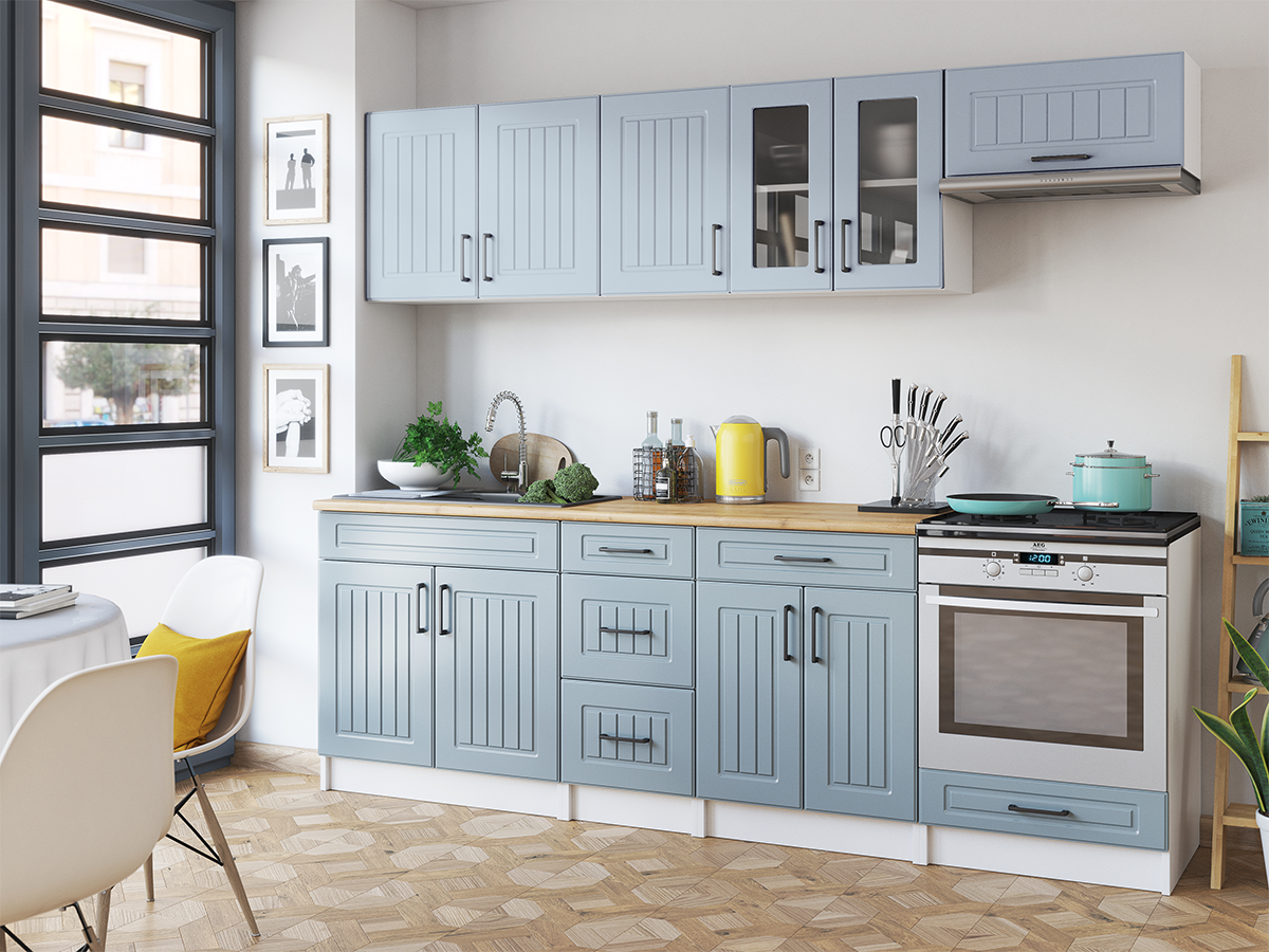 Domů Nábytek Kuchyně Kuchyňské linky FRONTI Kuchyňská linka BERIZA CHOCO 240cm - Denim
