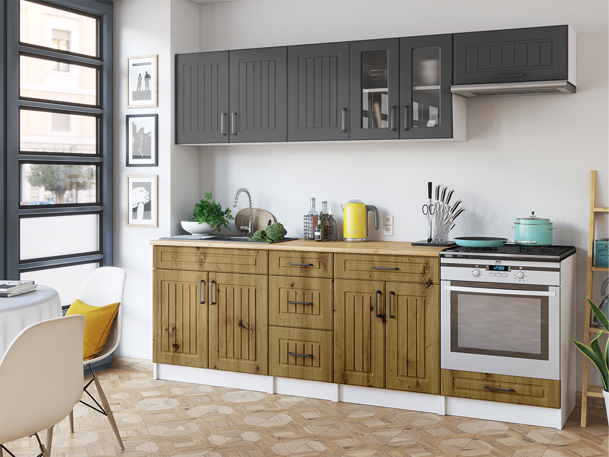 FRONTI Kuchyňská linka BERIZA CHOCO 240cm - Grafit + dub artisan