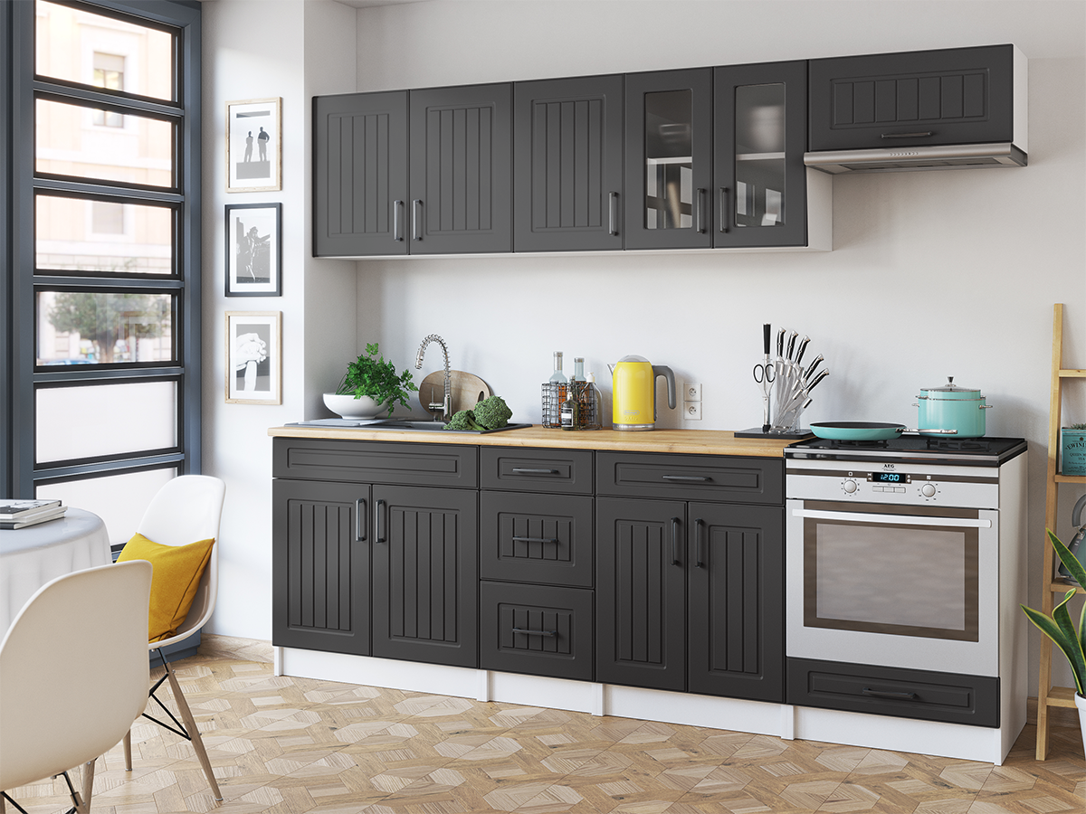 Domů Nábytek Kuchyně Kuchyňské linky FRONTI Kuchyňská linka BERIZA CHOCO 240cm - Grafit