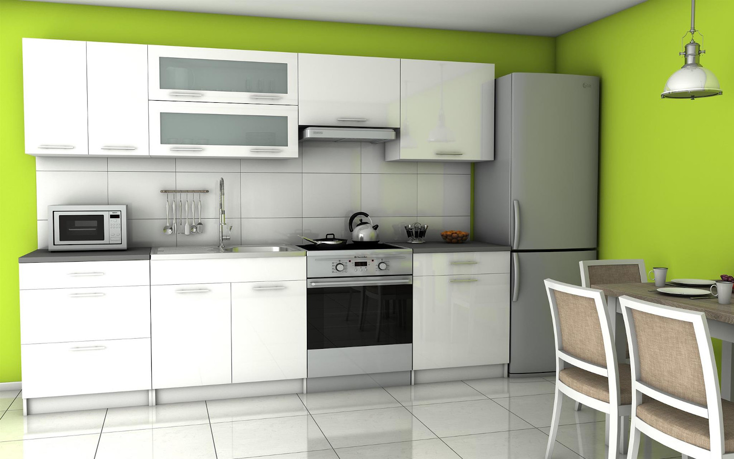 ROZMĚRY: Šířka spodních skříněk: 200 cm Šířka horních skříněk: 260 cm Výška spodních skříněk: 86 cm (2,8 cm pracovní deska /10 cm sokl) Výška horních skříněk: 58 cm Výška digestořové skříně: 40 cm Hloubka horních skříněk: 30 cm Hloubka spodních skříněk: 45 cm Hloubka pracovní desky: 60 cm