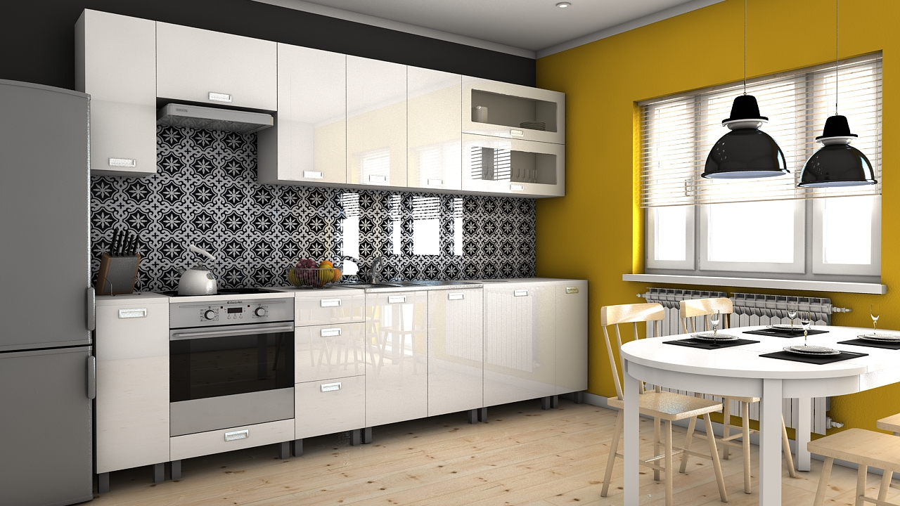 ROZMĚRY: Šířka kuchyně: 300 cm Výška spodních skříněk: 85 cm (pracovní deska 2,8 cm / nohy 10 cm) Hloubka spodních skříněk: 50 cm Hloubka pracovní desky: 60 cm Výška horních skříněk: 72 cm Hloubka horních skříněk: 30 cm