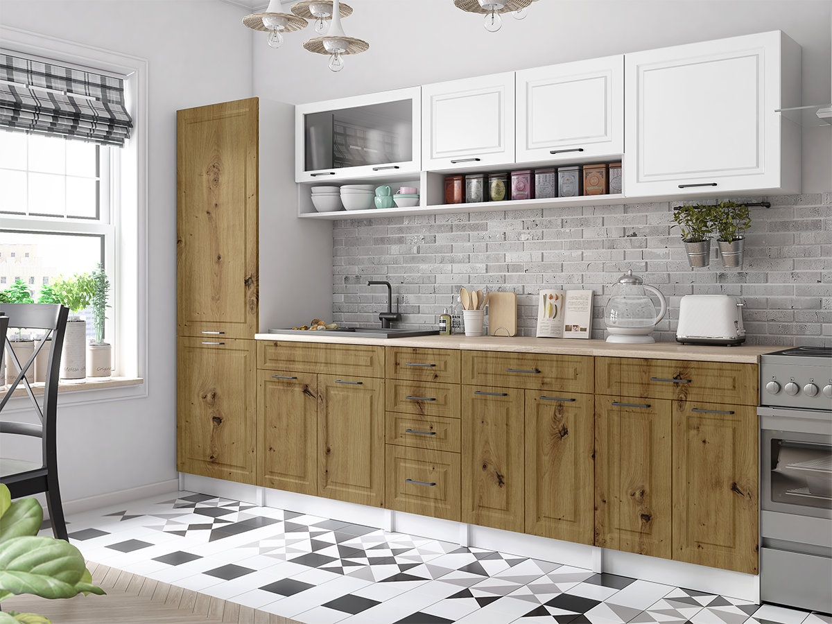 Domů Nábytek Kuchyně Kuchyňské linky FRONTI Kuchyňská linka BIRGID 300cm - Bílá + dub artisan