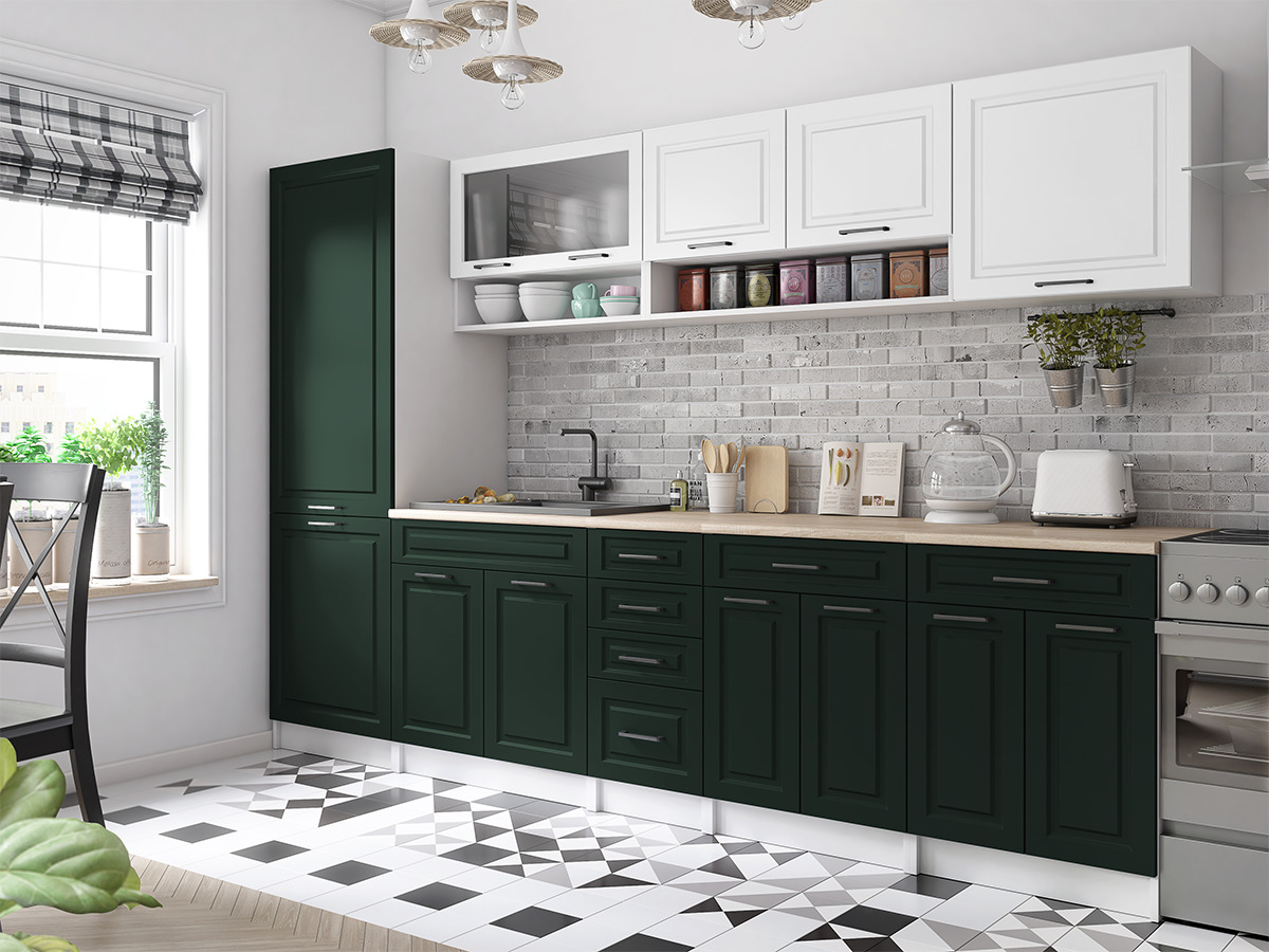 Domů Nábytek Kuchyně Kuchyňské linky FRONTI Kuchyňská linka BIRGID 300cm - Bílá + green