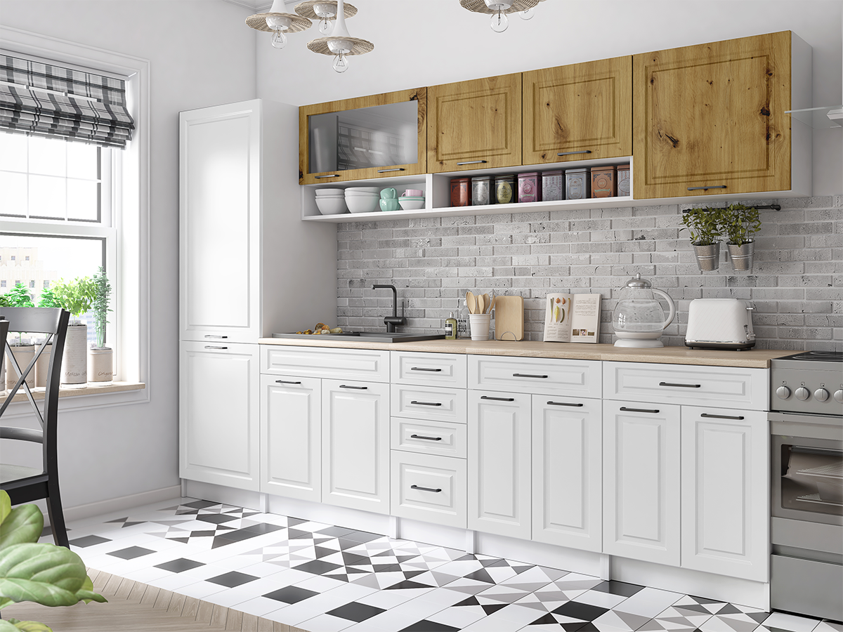Domů Nábytek Kuchyně Kuchyňské linky FRONTI Kuchyňská linka BIRGID 300cm - Dub artisan + bílá