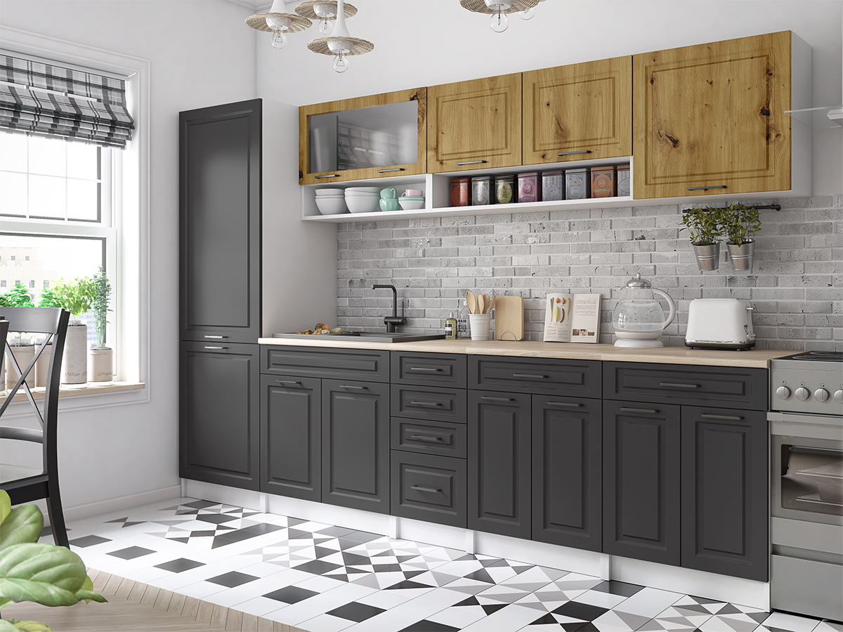 Domů Nábytek Kuchyně Kuchyňské linky FRONTI Kuchyňská linka BIRGID 300cm - Dub artisan + grafit