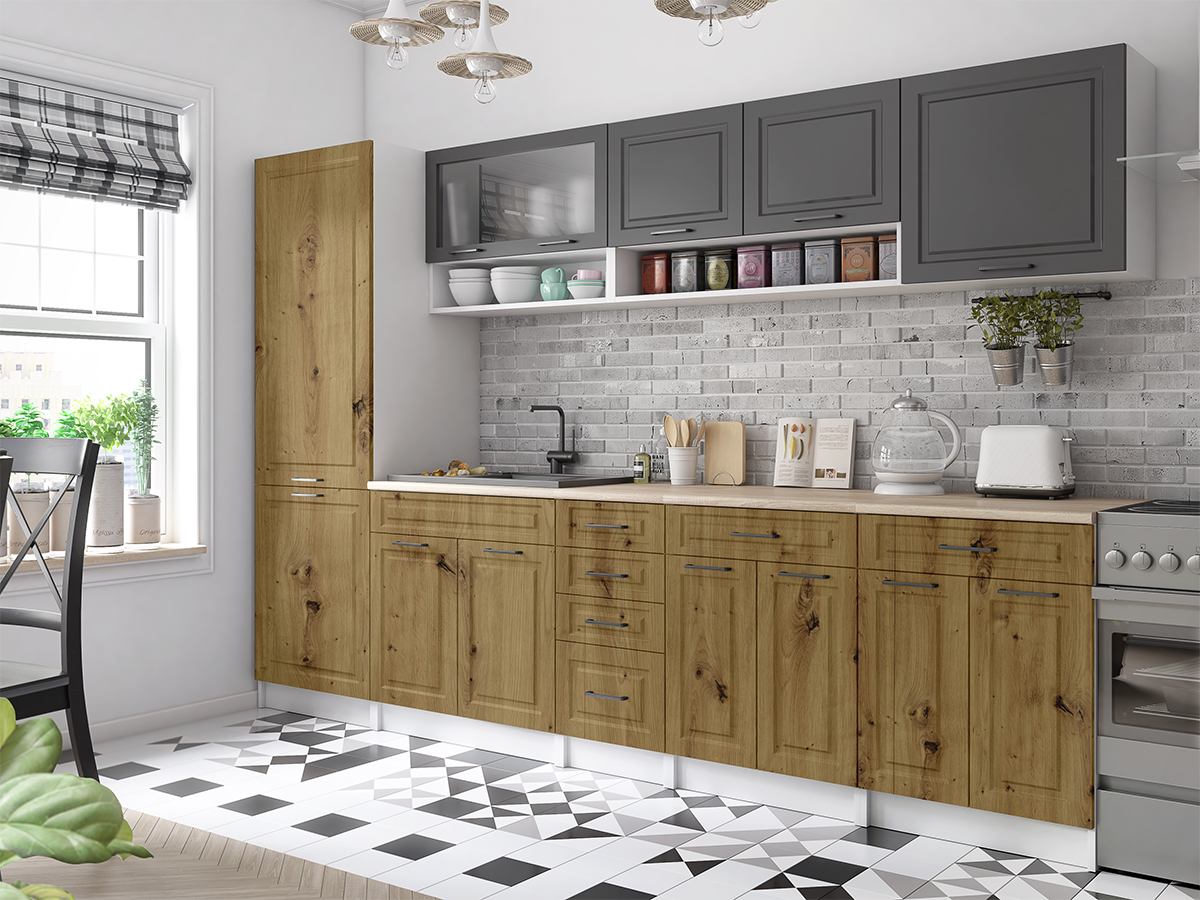Domů Nábytek Kuchyně Kuchyňské linky FRONTI Kuchyňská linka BIRGID 300cm - Grafit + dub artisan