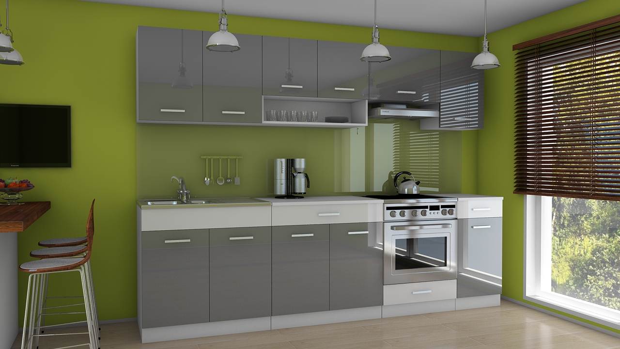 Domů Nábytek Kuchyně Kuchyňské linky FRONTI Kuchyňská linka CARMEN 260/260 - Šedý + bílý lesk