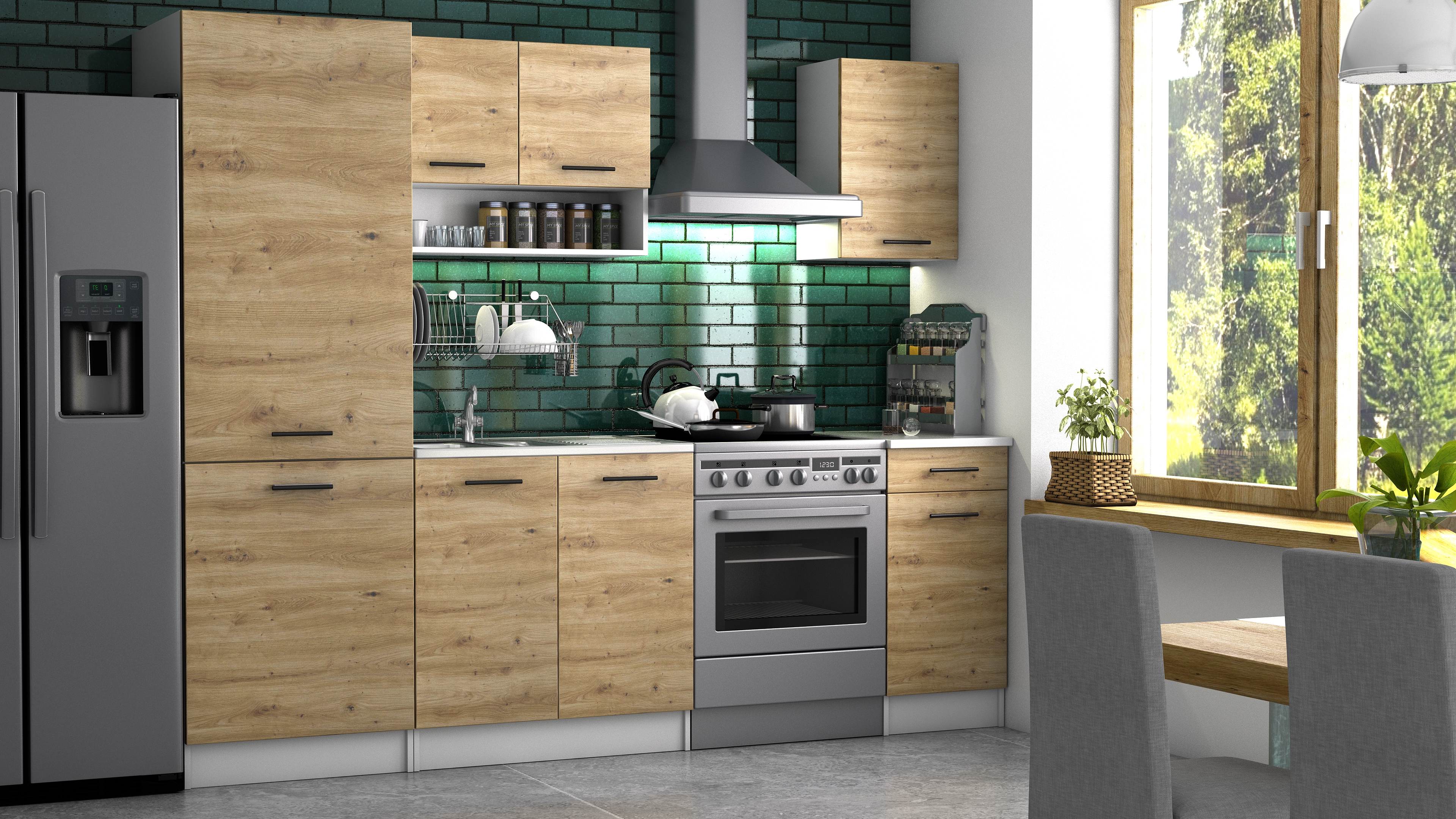 Domů Nábytek Kuchyně Kuchyňské linky FRONTI Kuchyňská linka DAGA II 240 SL6 - dub artisan