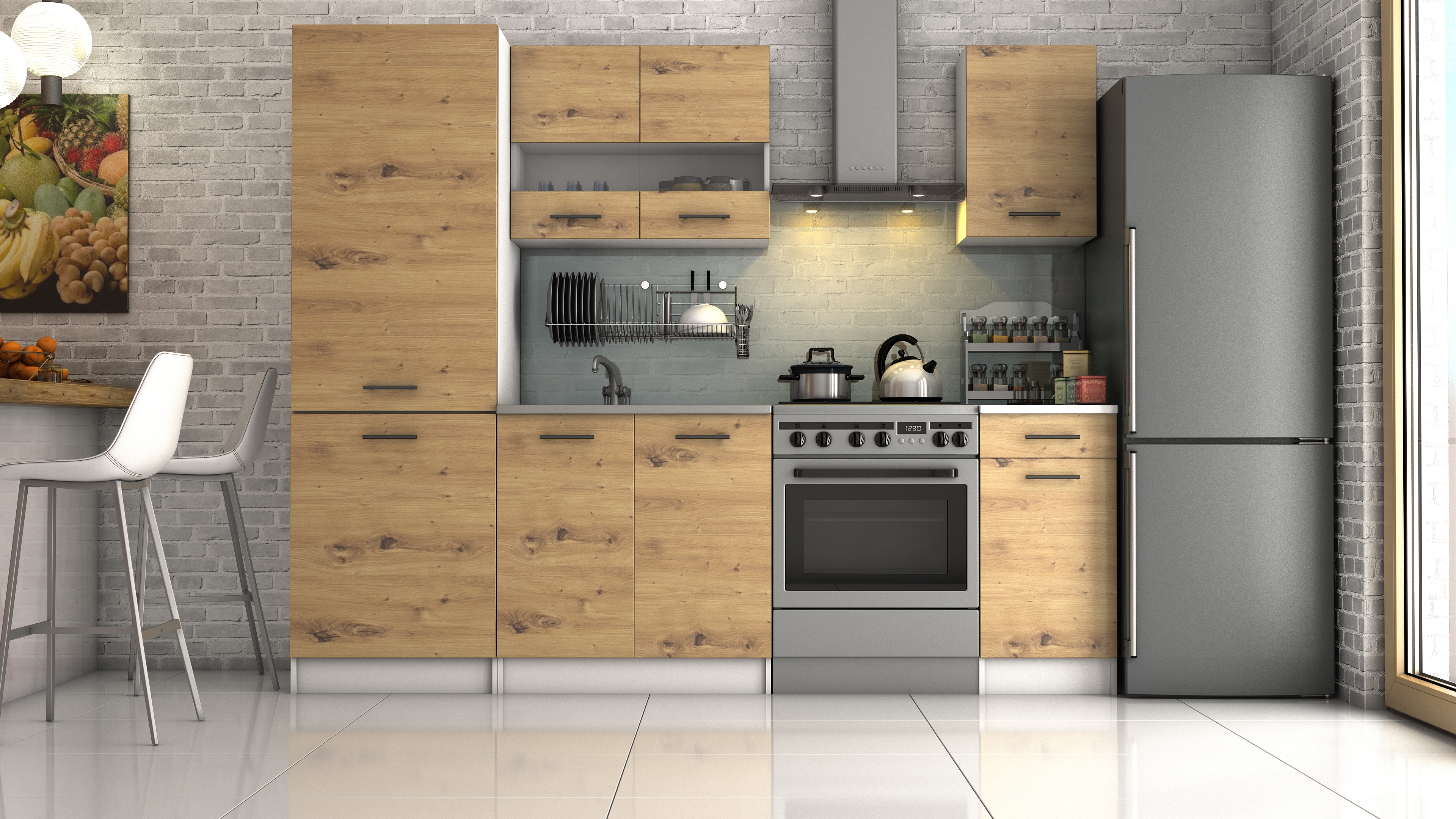 Domů Nábytek Kuchyně Kuchyňské linky FRONTI Kuchyňská linka DAGA III 240 SL6 - dub artisan