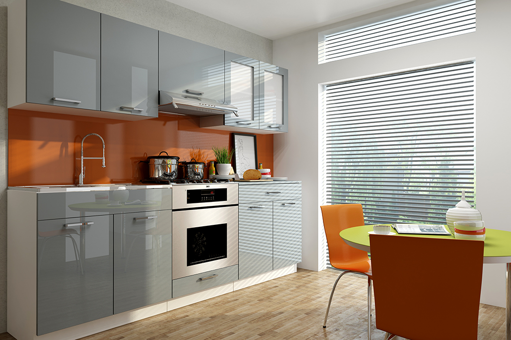 ROZMĚRY: Šířka spodních skříněk: 220 cm Šířka horních skříněk: 220 cm Výška spodních skříněk: 86 cm (2,8 cm pracovní deska / 10 cm sokl) Výška horních skříněk: 58 cm Výška digestořové skříňky: 40 cm Hloubka horních skříněk: 30 cm Hloubka spodních skříněk: 45 cm Hloubka skříně trouby: 56 cm Hloubka pracovní desky: 60 cm
