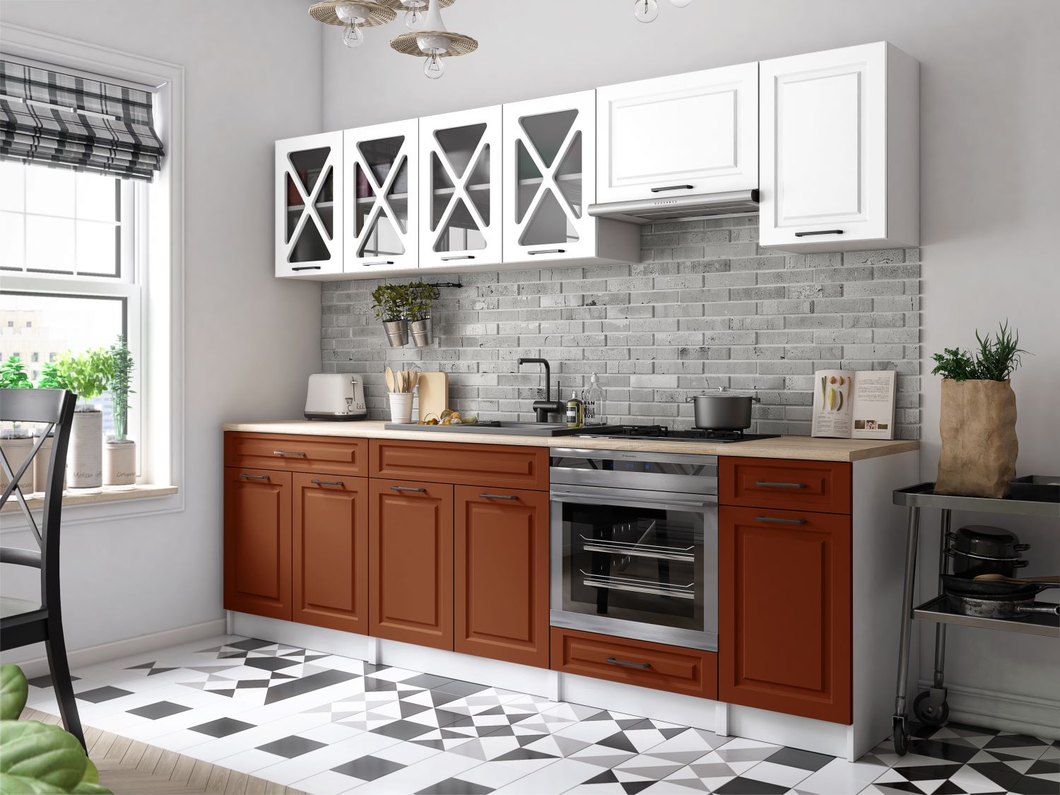 Domů Nábytek Kuchyně Kuchyňské linky FRONTI Kuchyňská linka GERTRID 260cm - Bílá + brick