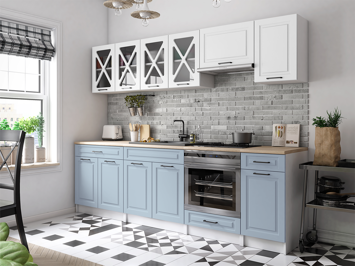 FRONTI Kuchyňská linka GERTRID 260cm - Bílá + denim
