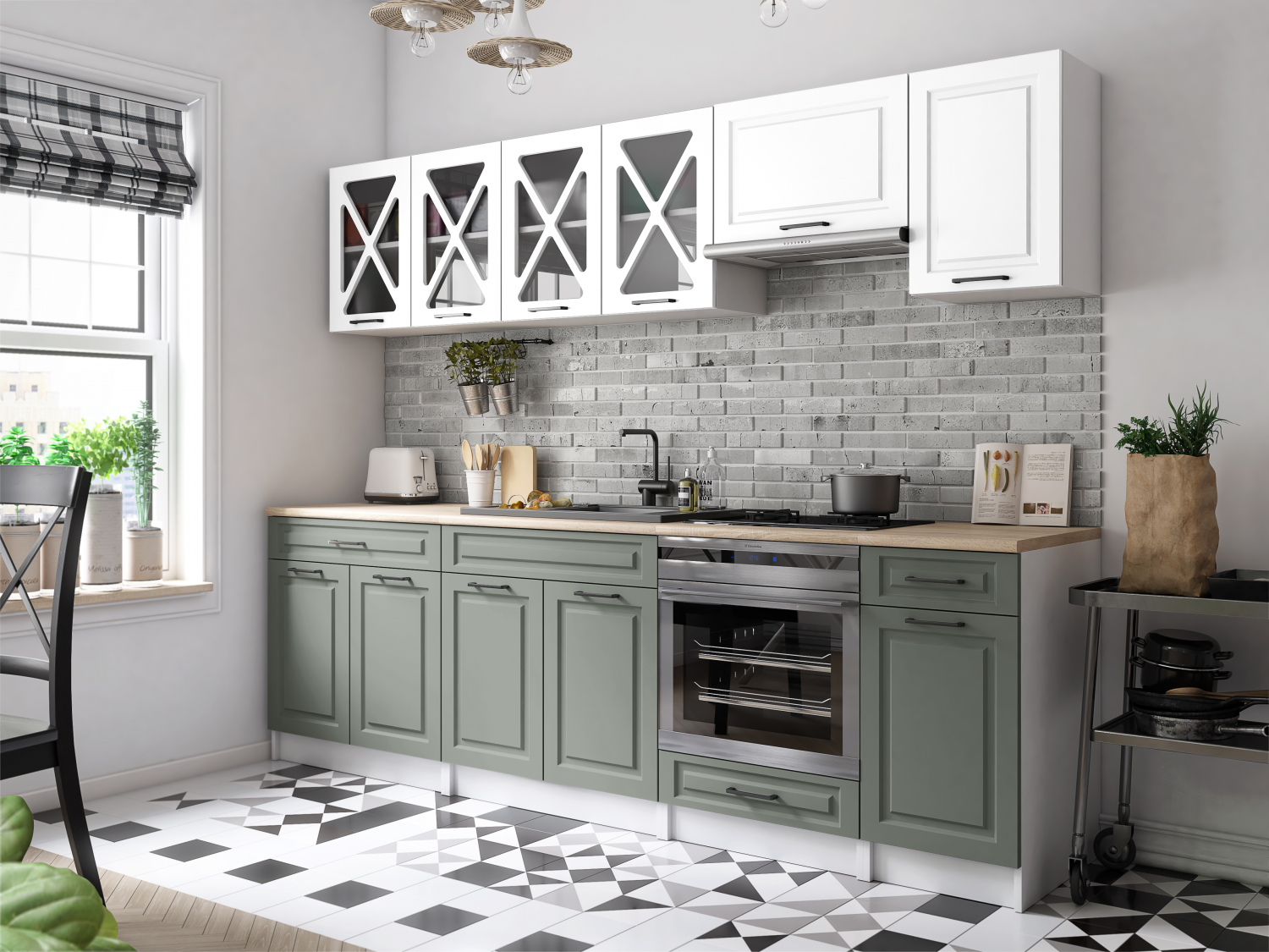 Domů Nábytek Kuchyně Kuchyňské linky FRONTI Kuchyňská linka GERTRID 260cm - Bílá + olive