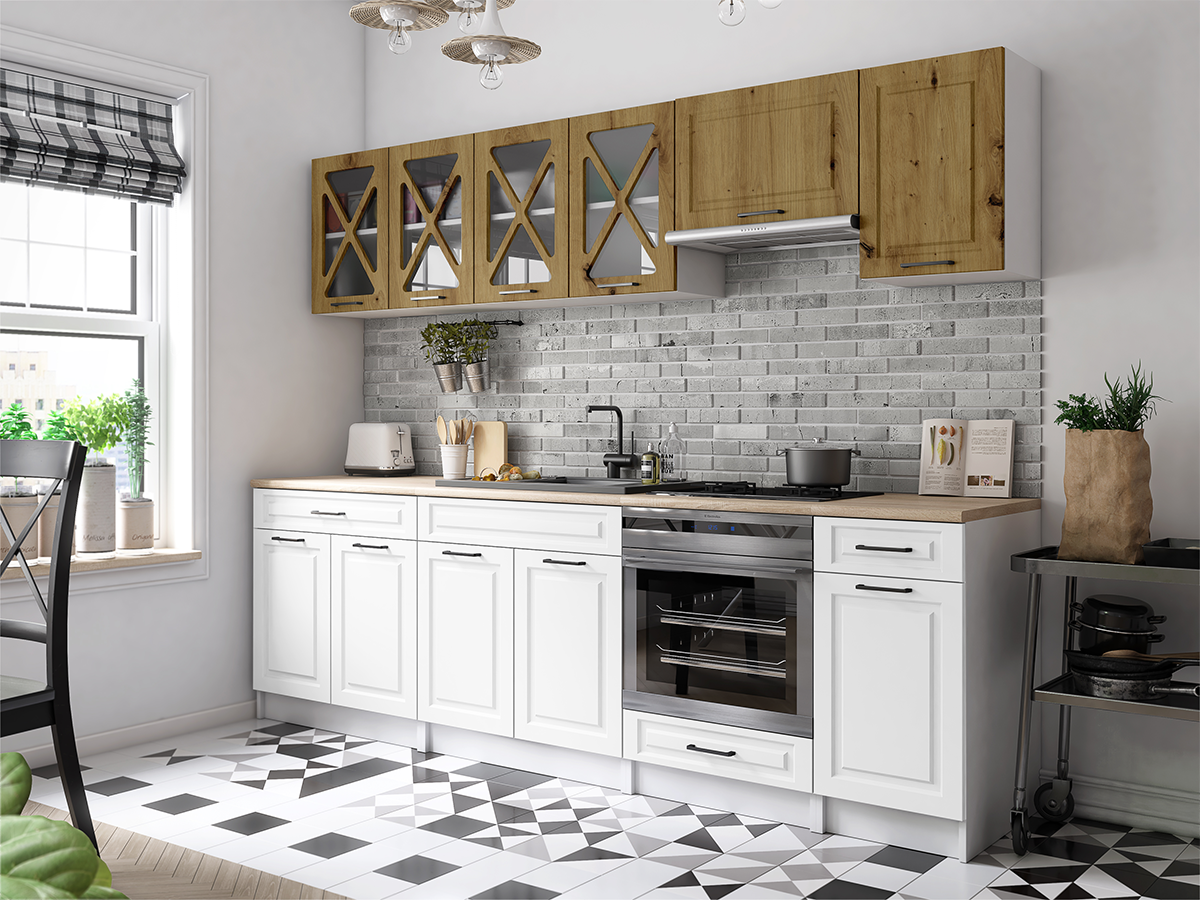 Domů Nábytek Kuchyně Kuchyňské linky FRONTI Kuchyňská linka GERTRID 260cm - Dub artisan + bílá
