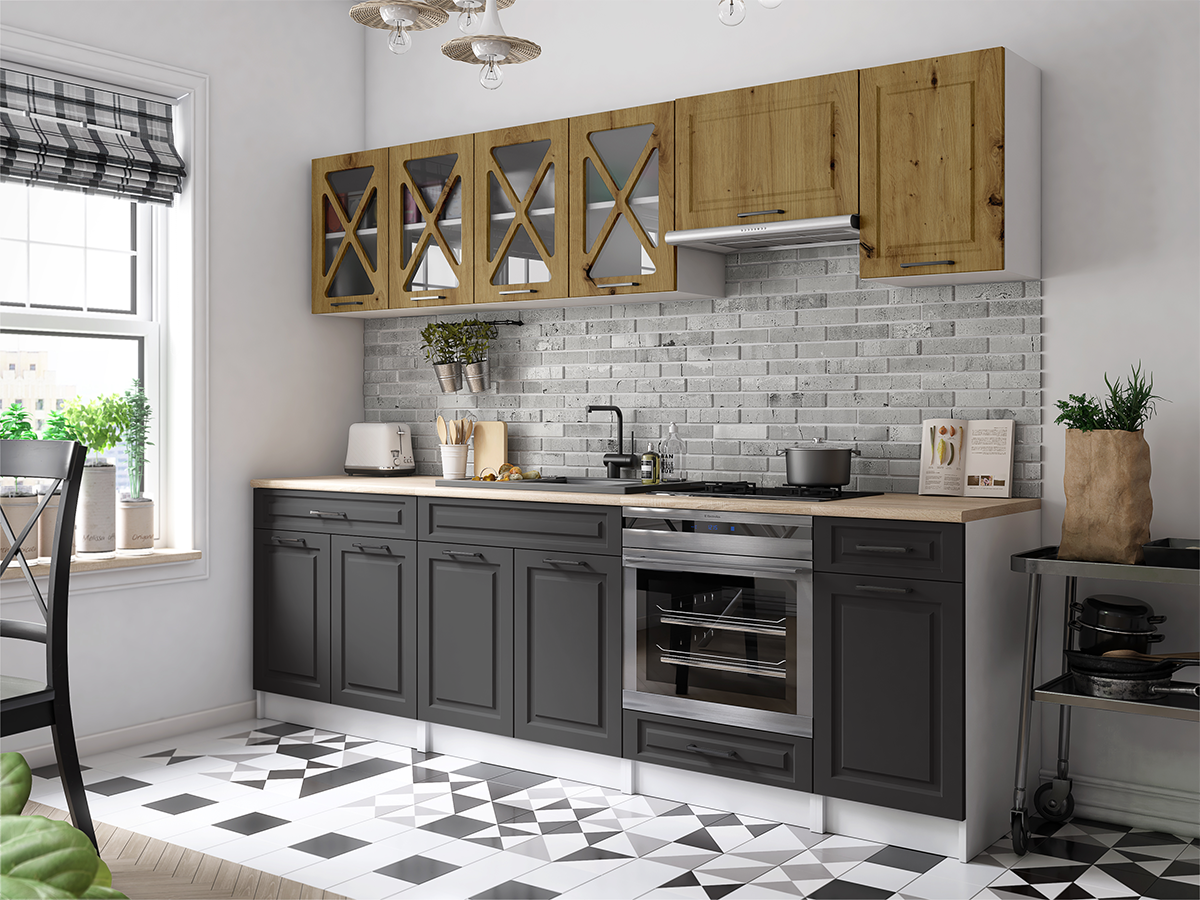 Domů Nábytek Kuchyně Kuchyňské linky FRONTI Kuchyňská linka GERTRID 260cm - Dub artisan + grafit