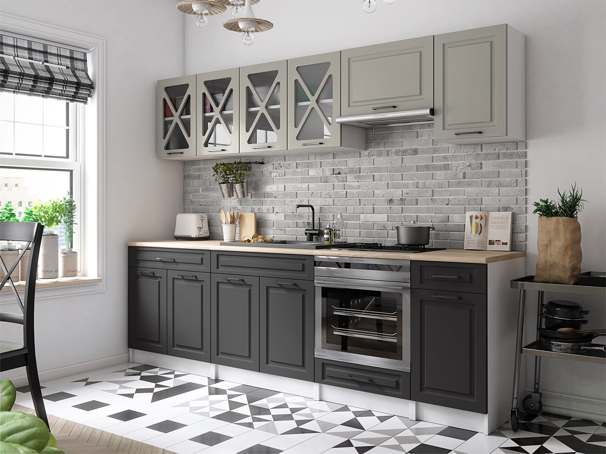 Domů Nábytek Kuchyně Kuchyňské linky FRONTI Kuchyňská linka GERTRID 260cm - Kamenný + grafit