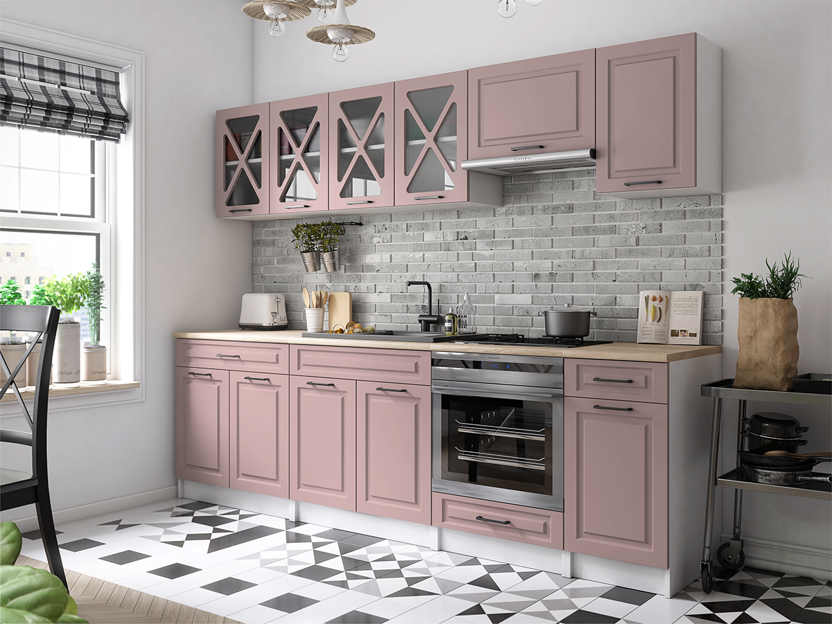 ROZMĚRY: Šířka spodních skříněk: 260 cm Šířka horních skříněk: 260 cm Výška spodních skříněk: 86 cm (2,8 cm pracovní deska / 10 cm sokl) Výška horních skříněk: 58 cm Hloubka horních skříněk: 30 cm Hloubka spodních skříněk: 45 cm Hloubka pracovní desky: 60 cm