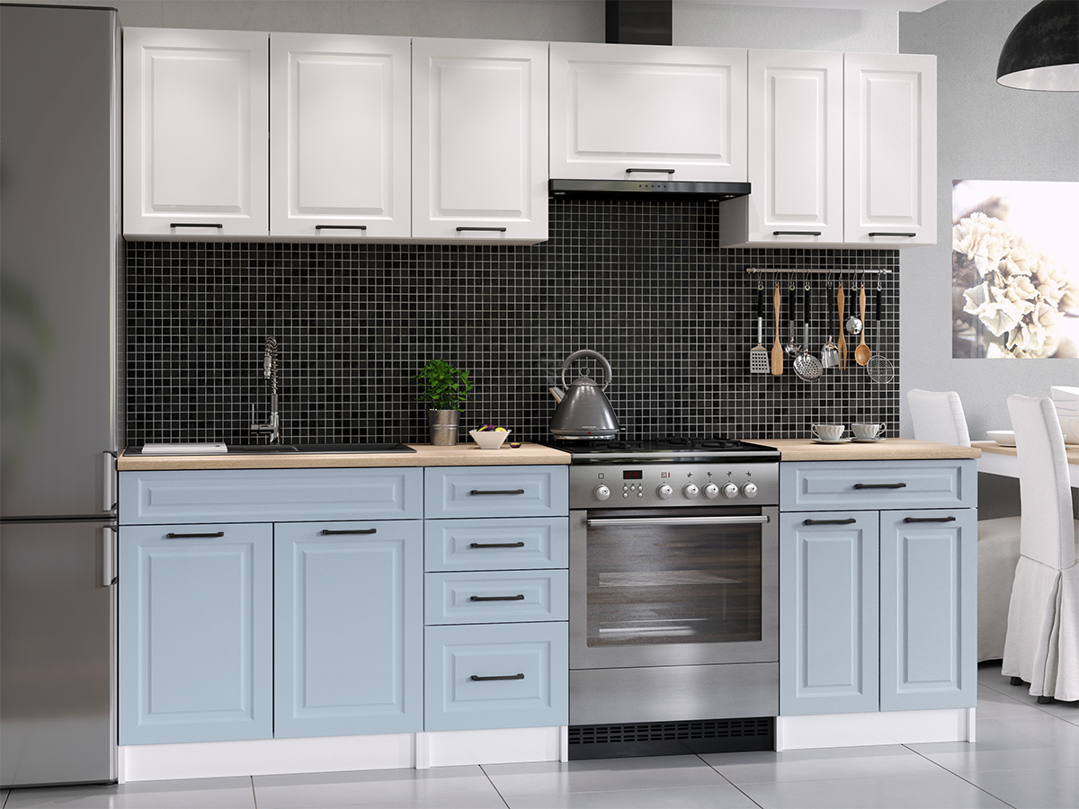 FRONTI Kuchyňská linka INGRID 240cm - Bílá + denim