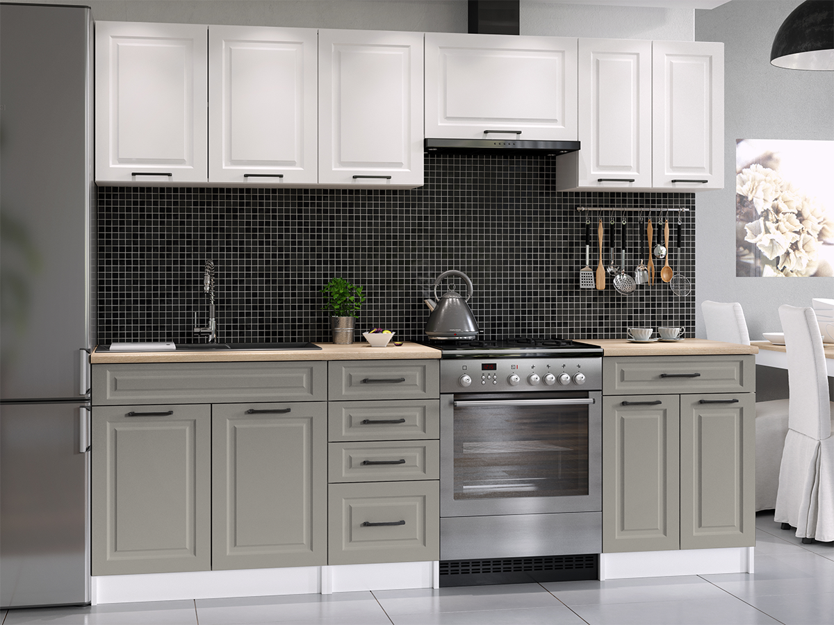 FRONTI Kuchyňská linka INGRID 240cm - Bílá + kamenný