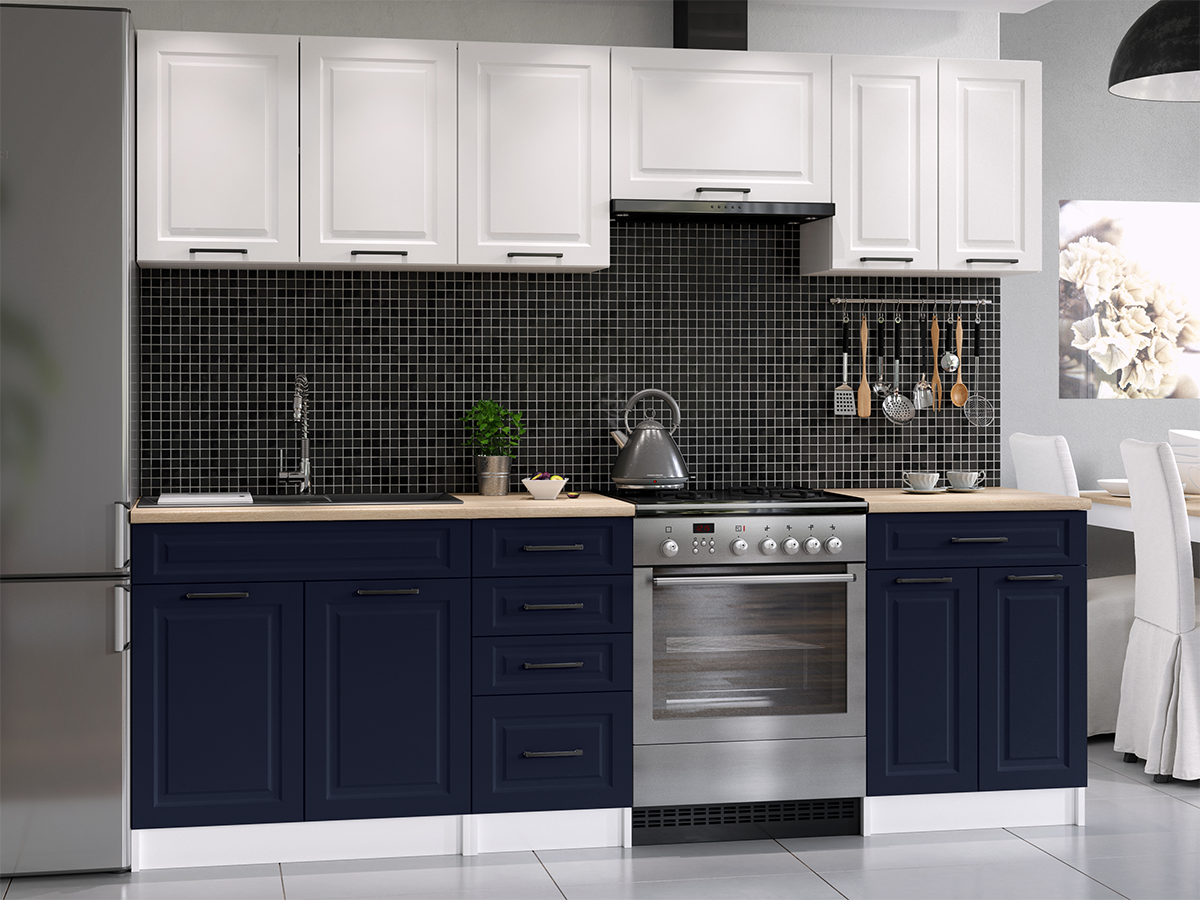 Domů Nábytek Kuchyně Kuchyňské linky FRONTI Kuchyňská linka INGRID 240cm - Bílá + marine blue