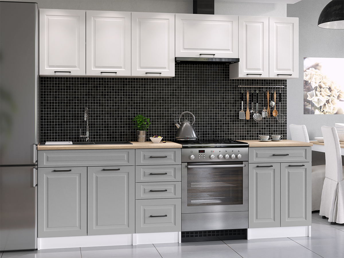 FRONTI Kuchyňská linka INGRID 240cm - Bílá + popel