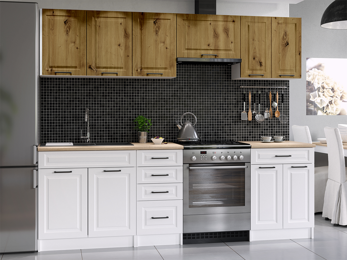 Domů Nábytek Kuchyně Kuchyňské linky FRONTI Kuchyňská linka INGRID 240cm - Dub artisan + bílá