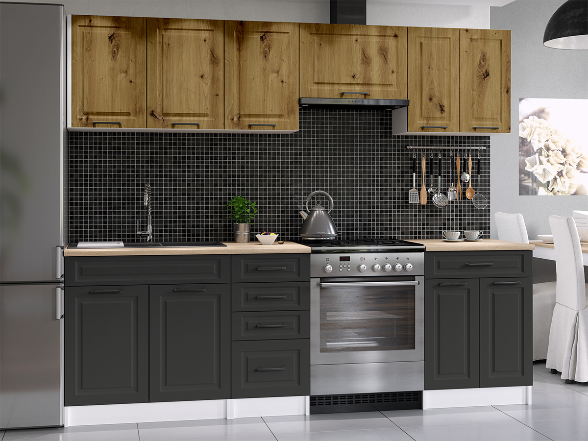 FRONTI Kuchyňská linka INGRID 240cm - Dub artisan + grafit