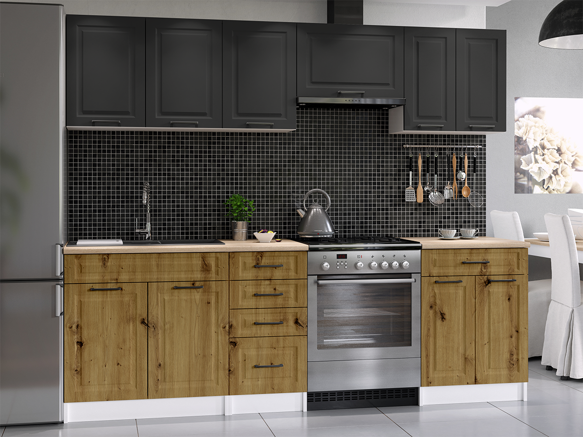 Domů Nábytek Kuchyně Kuchyňské linky FRONTI Kuchyňská linka INGRID 240cm - Grafit + dub artisan