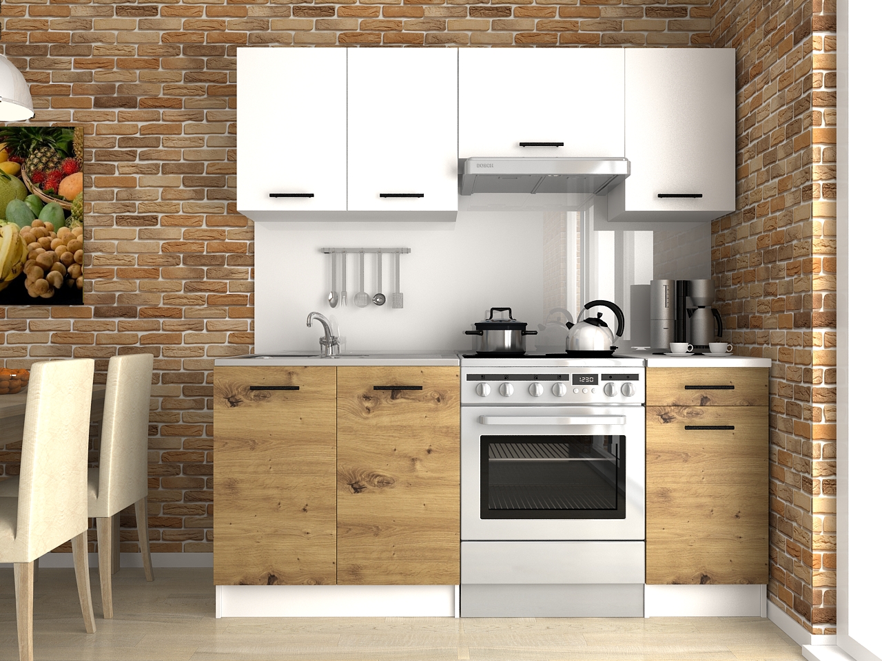 Domů Nábytek Kuchyně Kuchyňské linky FRONTI Kuchyňská linka LUIZA 180x120 - Bílá + artisan