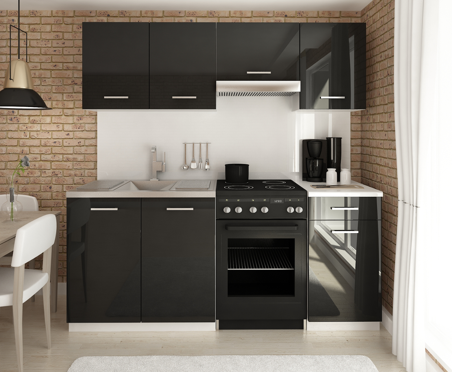 Domů Nábytek Kuchyně Kuchyňské linky FRONTI Kuchyňská linka LUIZA 180x120 - Černý lesk