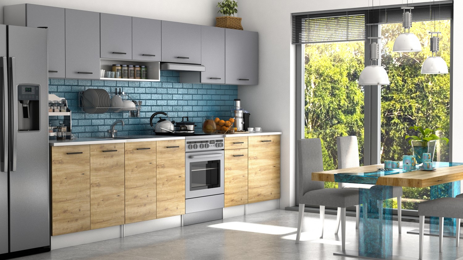 Domů Nábytek Kuchyně Kuchyňské linky FRONTI Kuchyňská linka LUIZA II 320x260 - Grafit + dub artisan
