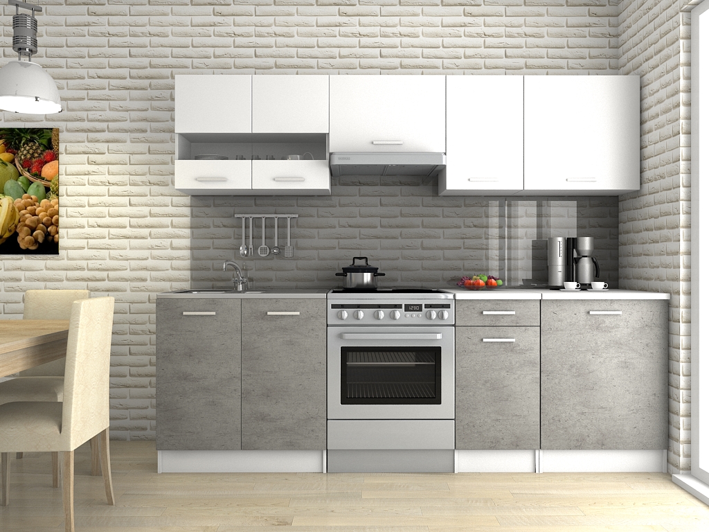 Domů Nábytek Kuchyně Kuchyňské linky FRONTI Kuchyňská linka LUIZA III 240x180 - Bílá + beton