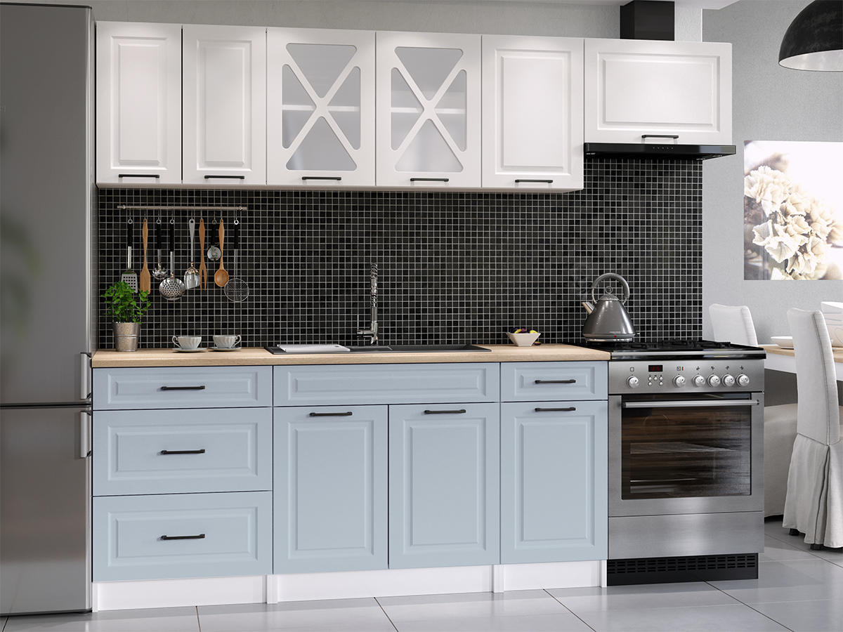 FRONTI Kuchyňská linka MARGID 240cm - Bílá + denim