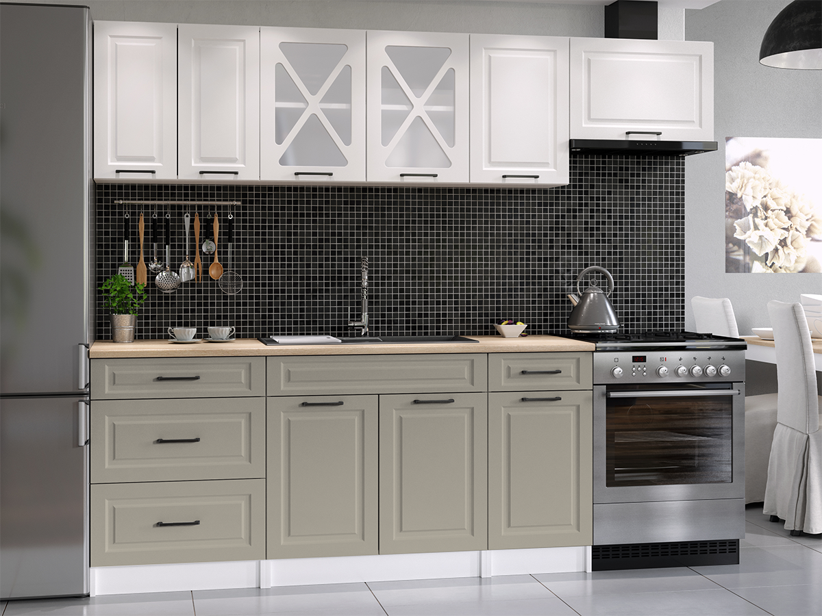 FRONTI Kuchyňská linka MARGID 240cm - Bílá + kamenný