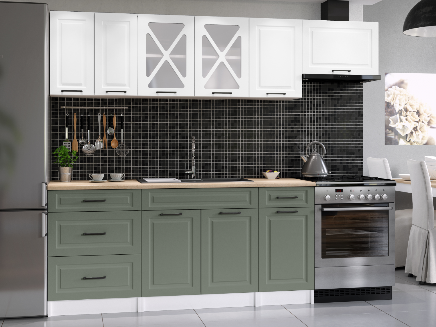 Domů Nábytek Kuchyně Kuchyňské linky FRONTI Kuchyňská linka MARGID 240cm - Bílá + olive