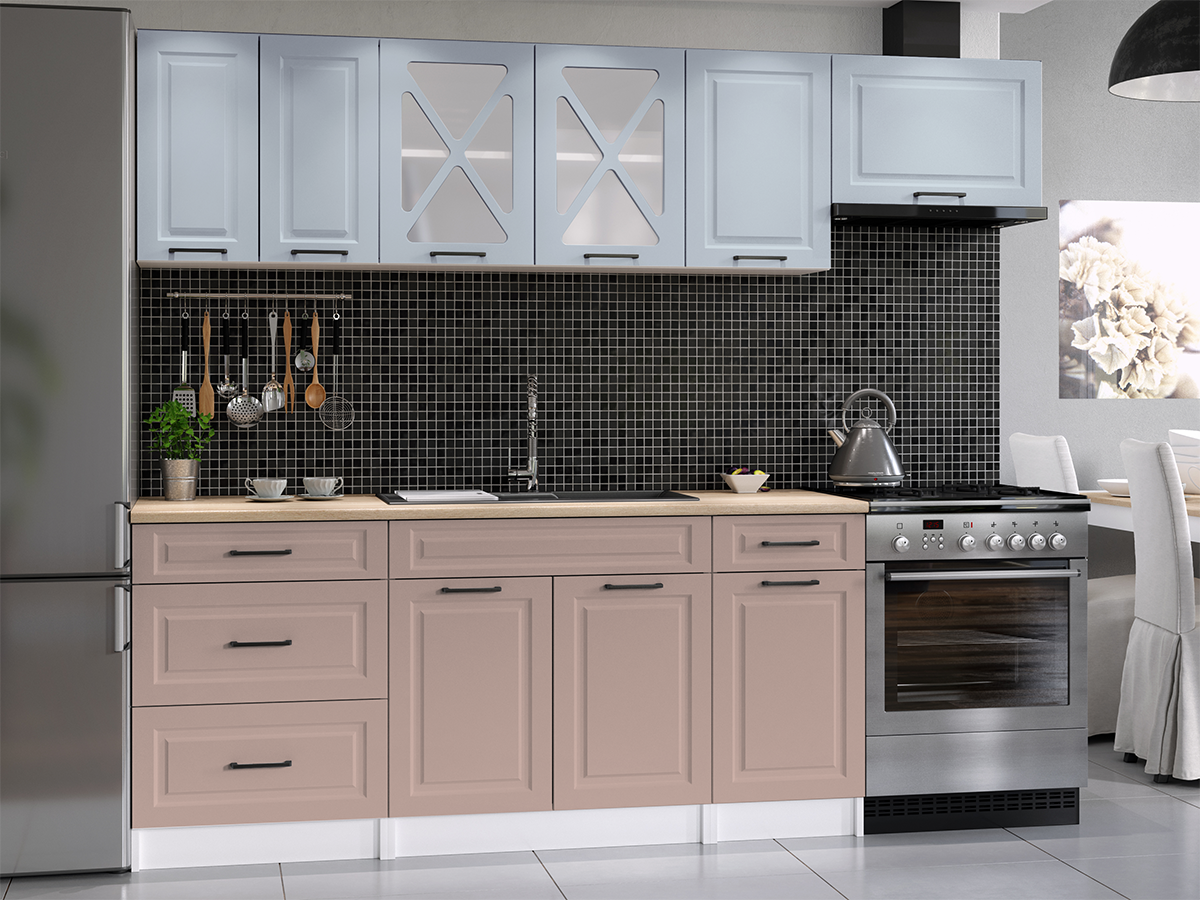 Domů Nábytek Kuchyně Kuchyňské linky FRONTI Kuchyňská linka MARGID 240cm - Denim + kobe